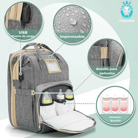 con nuestra pañalera con cambiador integrado, nunca más tendrás que preocuparte por buscar un lugar limpio y cómodo para cambiar a tu bebé. ¡Todo lo que necesitas estará al alcance de tu mano!