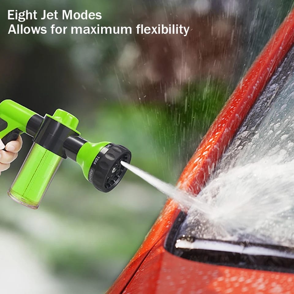 BOQULLA DE MANGUERA DE ALTA PRESION 8 EN 1, PISTOLA DE ESPUMA, DISPENSADOR DE AGUA Y JABON